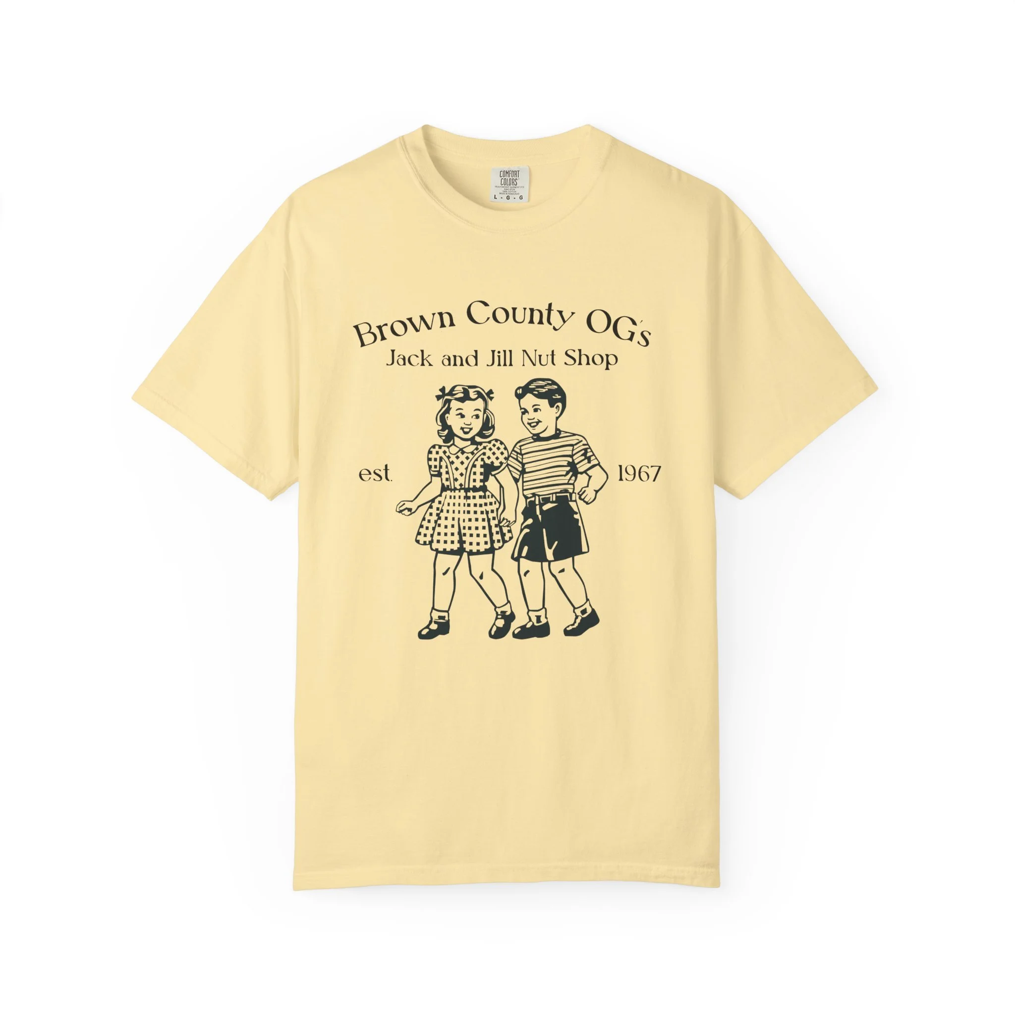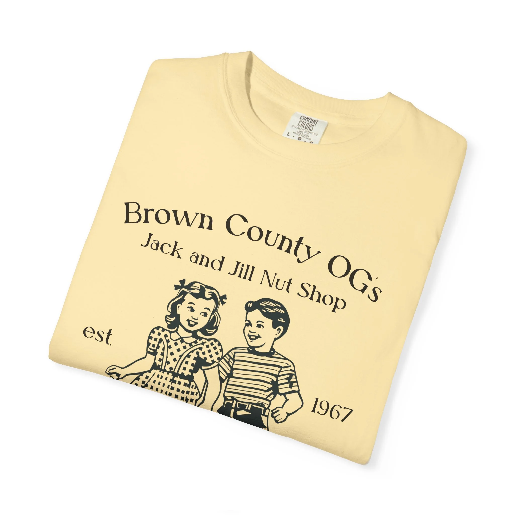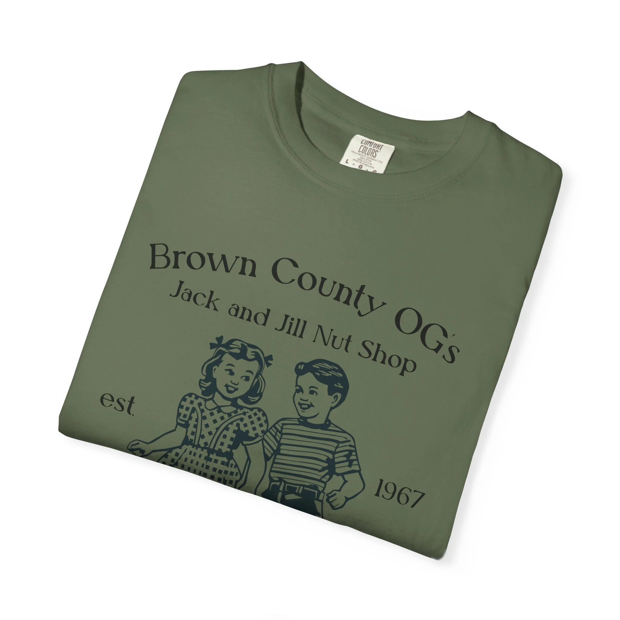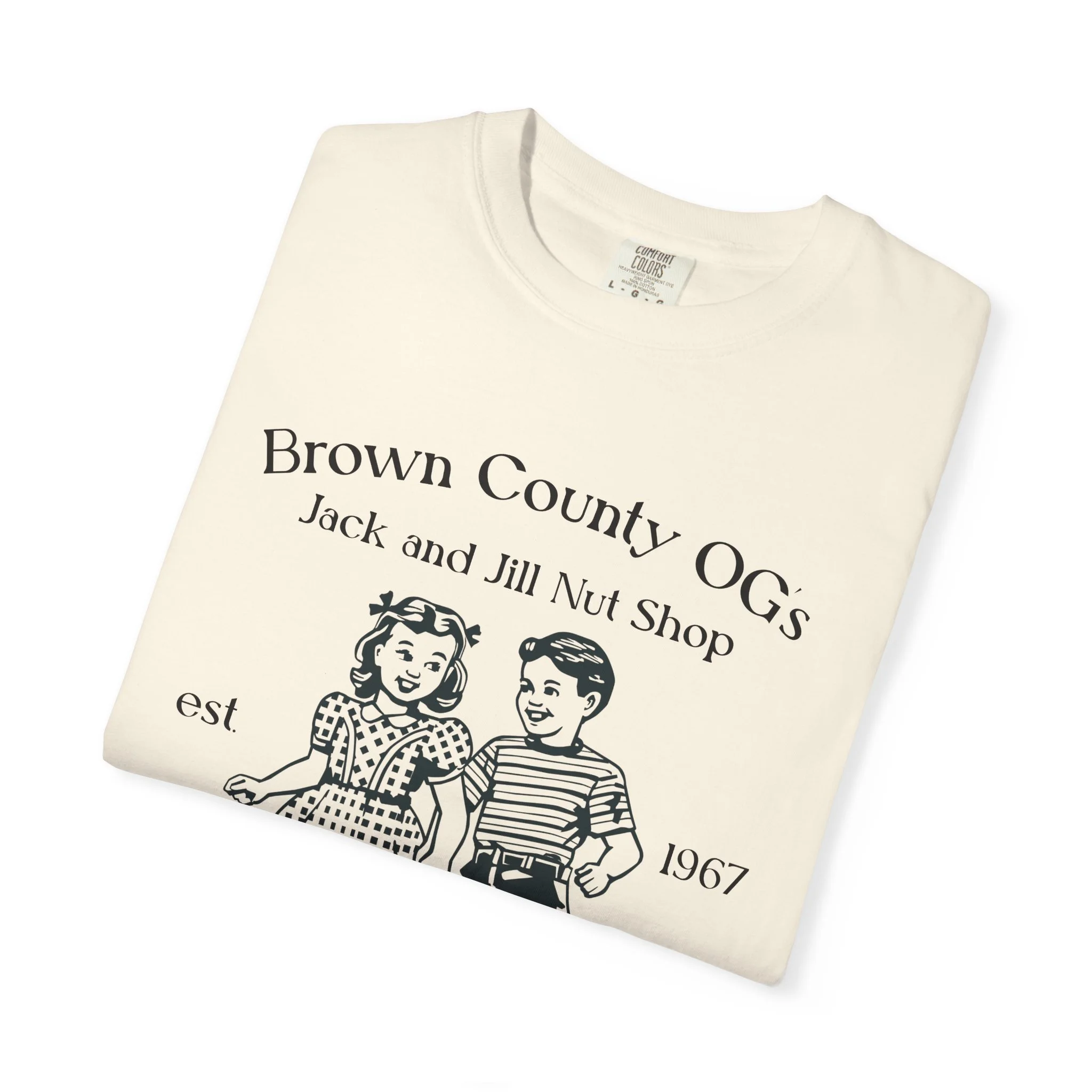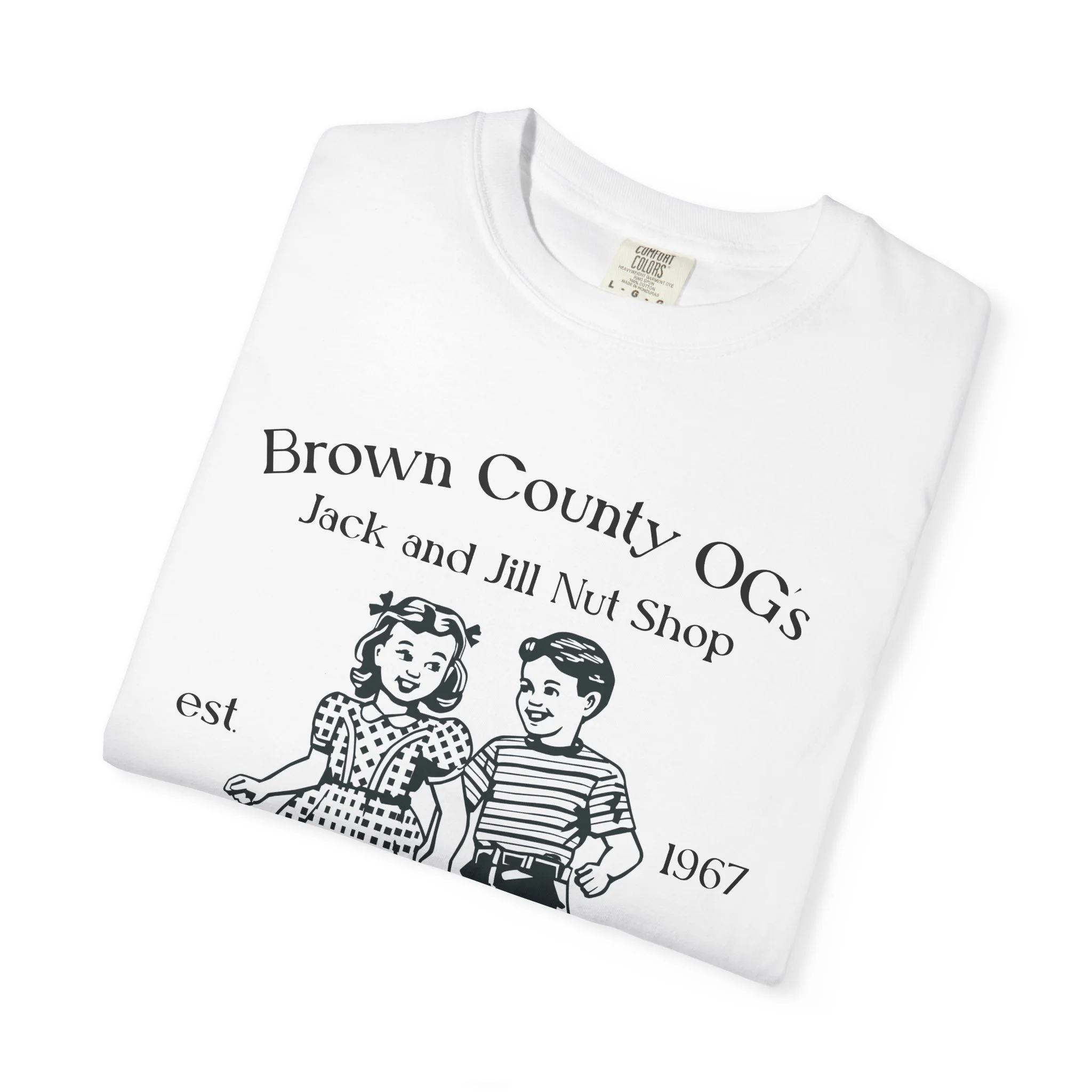 All apparel comes in multiple colors and sizes! Enjoy a classic tee with our vintage logo, a small piece of Brown County, or a “nutty” spin on the basic tee.